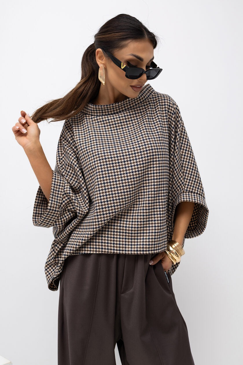 Táto nadrozmerná blúzka v štýle kimona od poľského výrobcu je perfektnou voľbou pre tých, ktorí hľadajú pohodlie a štýl. Široký, rebrovaný výstrih a rukávy jej dodávajú jedinečný charakter. Vďaka jednoduchému dizajnu sa hodí k rôznym outfitom – ležérnym aj elegantnejším. Hodí sa k džínsom, sukni a dokonca aj k šortkám, čím ponúka množstvo možností na vytvorenie módnych a pohodlných outfitov.